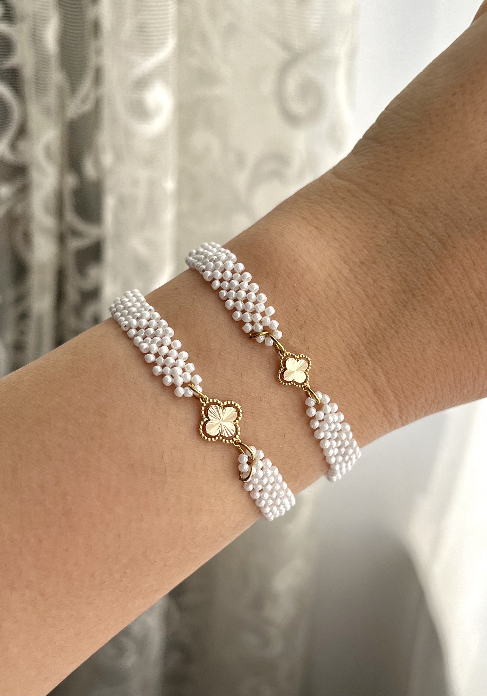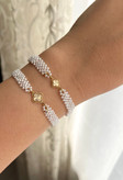 شما میتونید دستبند را با بند مارشال،سنگ،مروارید و نخ بصورت ساده و بافت تهیه کنید