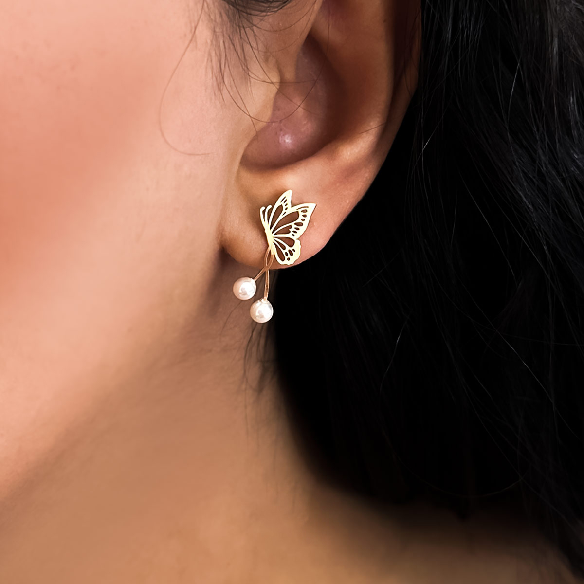 نیم ست طلا پروانه مرواریدی تابه تا.