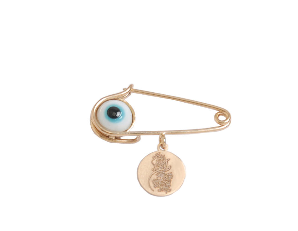 سنجاق طلا چشم نظر با حک و ان یکاد